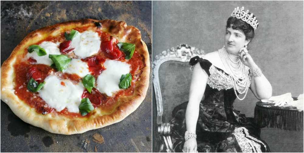 Легенда гласит, что путешествующей паре наскучила изысканная кухня аристократов, и им захотелось попробовать какое-нибудь блюдо простого народа. Самому знаменитому пиццайоло Неаполя Раффаэле Эспозито, владельцу пиццерии Brandi (кстати, она до сих пор работает в Неаполе), было поручено преподнести такое блюдо к королевскому столу. И он создал в честь приезда королевы Маргариты особенную патриотическую пиццу… в цветах итальянского флага! Для этого пиццайоло выбрал зелёный базилик, белый сыр моцарелла и алые помидоры. Этот вид пиццы сегодня нам известен как пицца Маргарита (pizza Margherita).