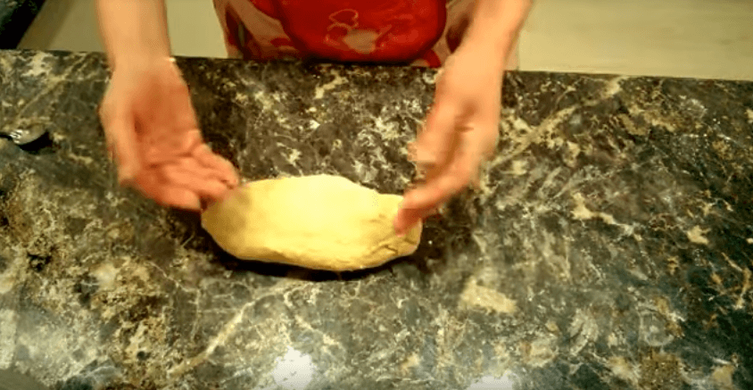 4. Тесто заметьте, не должно получиться тугим и довольно рыхлым и мягким. На столе присыпанной мукой с ним нужно поиграться, оно это очень любит. Хорошенько разомните его.