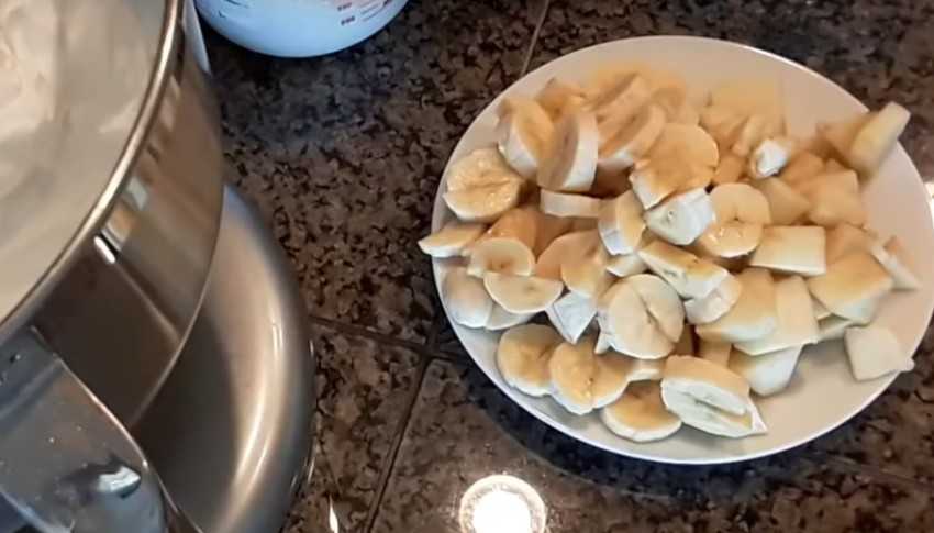 Бананов много брать не нужно, они тяжелые и не дадут тесту подняться и хорошо пропечься. Желательно не использовать переспелые плоды, а лучше взять немного зеленоватые, чтобы они не пускали сок и оставались твердые.