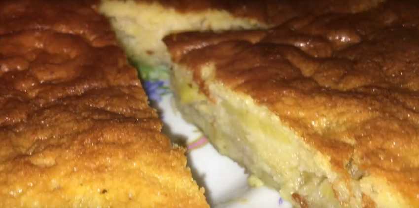 - Преимущество этого способа выпекания бананового пирога — хрустящая корочка, которая получается за счет панировочных сухарей после остывания.