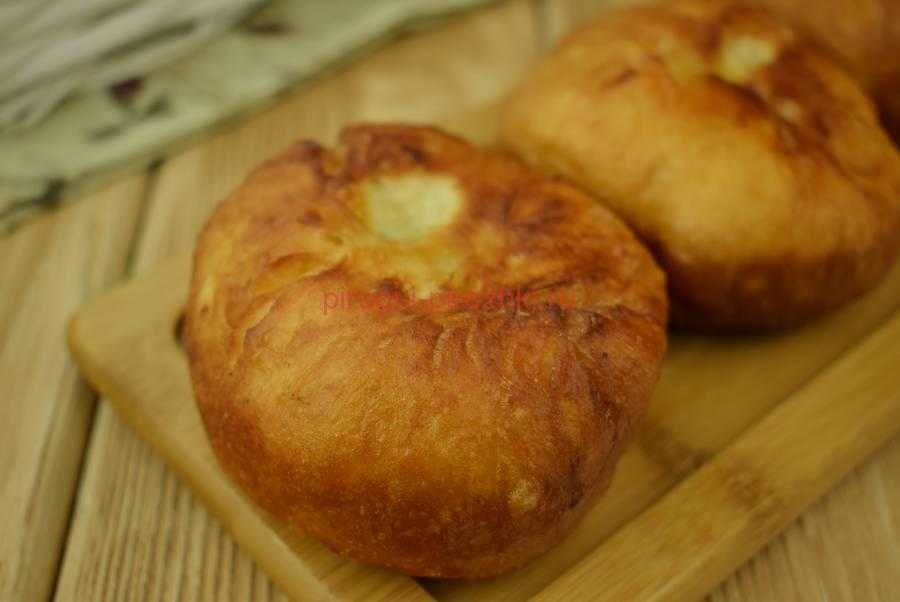 Жарить пирожки на разогретой с подсолнечным маслом сковороде на среднем огне до румяного цвета с двух сторон.