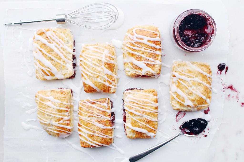 - Выкладываем нашу начинку в виде черничного джема, складываем прямоугольник пополам и защепляем края. Если вы считаете, что края не получилось скрепить плотно, сделайте это с помощью зубцов вилки.
