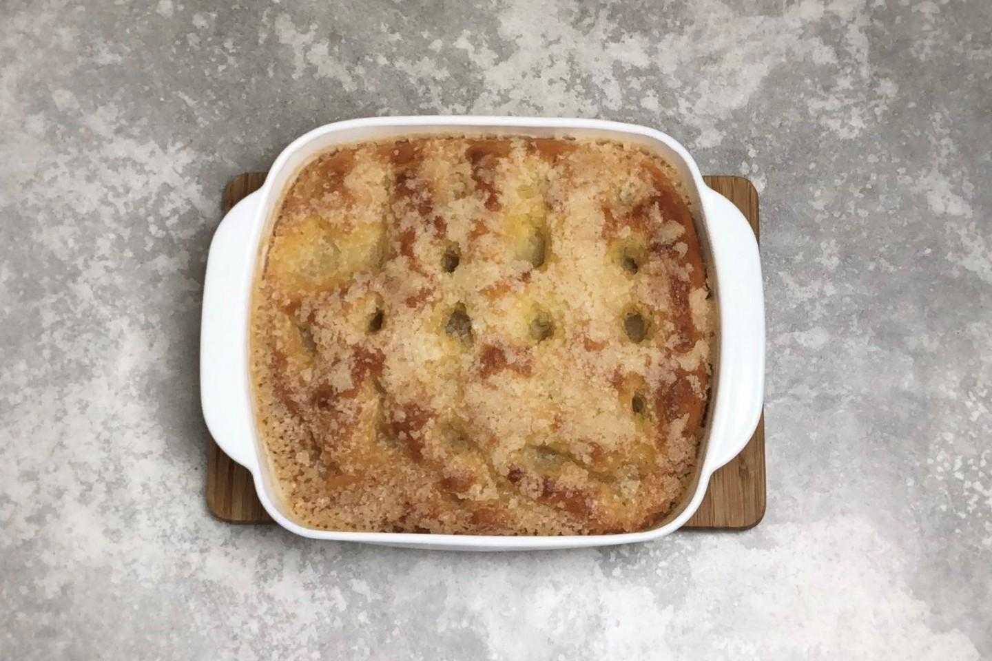 - За 5–10 минут до вытаскивания пирога из духовой печи поливаем его оставшимися сливками, так пирог будет более мягким и пропитанным. Сахарный пирог готов! Приятного аппетита!