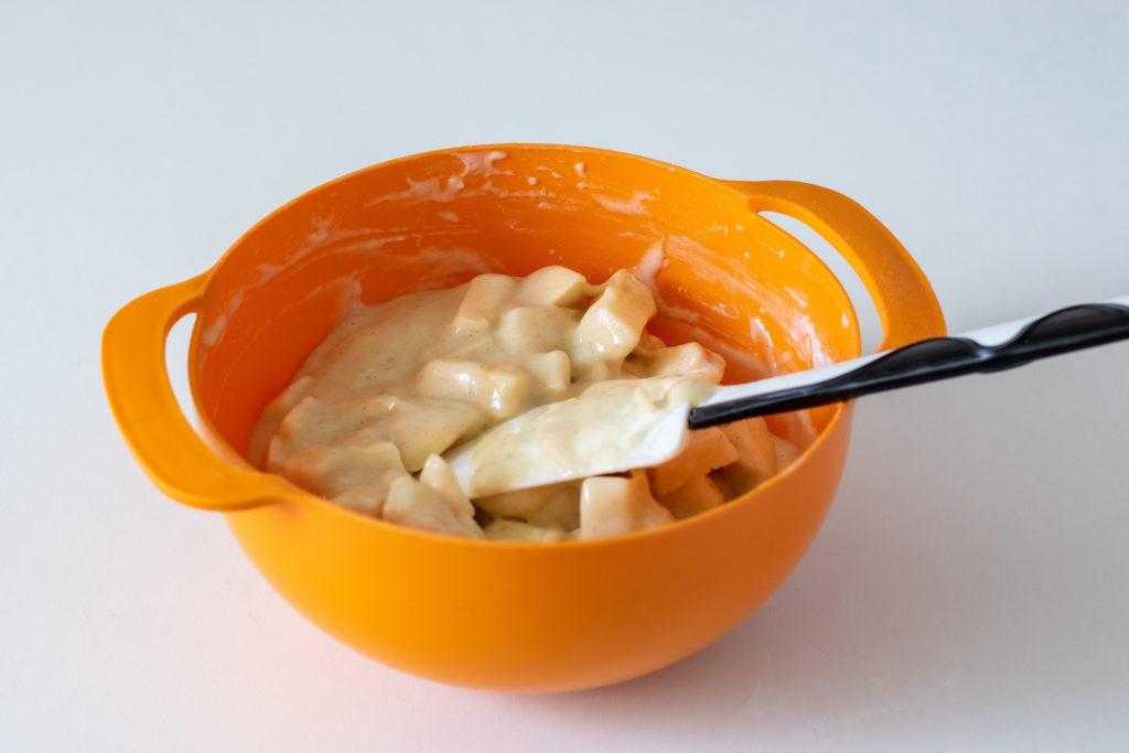 5. Тем временем подготовьте яблоки. Удалите с них кожуру и нарубите на небольшие кусочки.