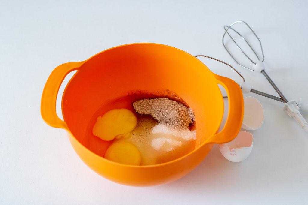 2.Добавьте яйца и продолжайте взбивать до получения однородной, пышной массы.