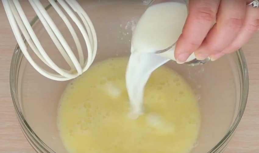 - В отдельную миску разбиваем оставшееся яйцо, взбиваем венчиком, разбавляем молоком.
