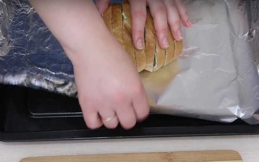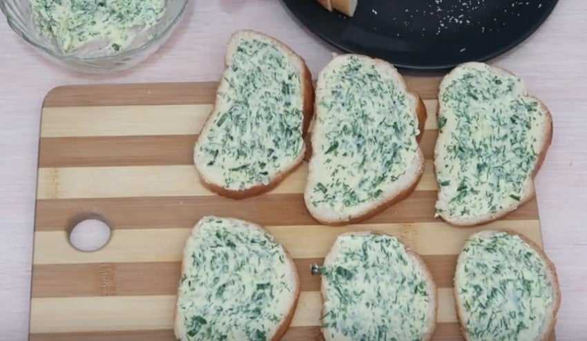 Для этого вида гренок удобнее брать хлеб для тостов, но можно и обычный нарезной батон.