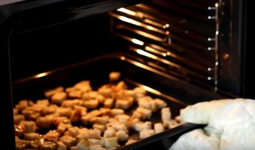 Гренки из батона для салата «Цезарь» – простой рецепт в духовке