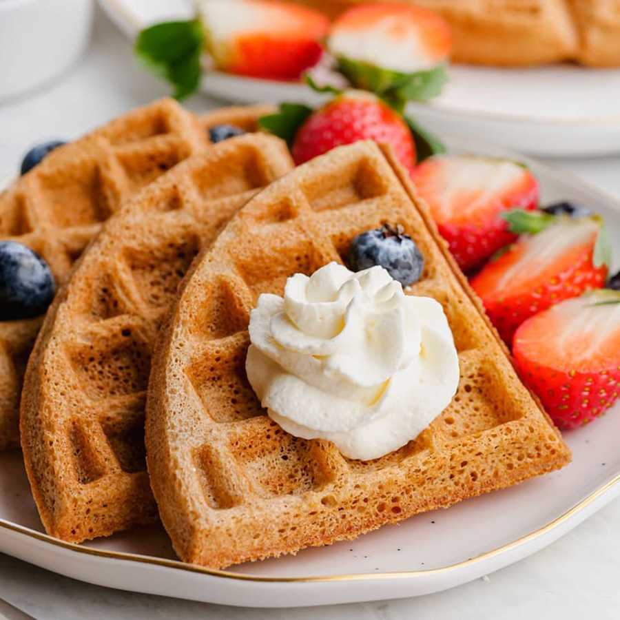 - Полностью или частично заменив миндальную муку на льняную, по тому же рецепту можно выпекать кето-вафли из льняной муки в электровафельнице. Это одна из альтернатив безглютеновых вафель без муки.