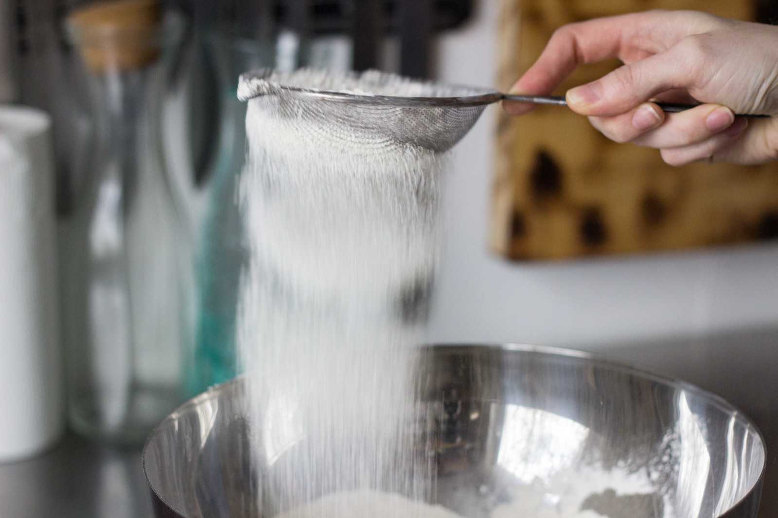 - Подышать оставшиеся сухие компоненты и все хорошо перемешать, а потом просеять еще раз, но уже смесью.