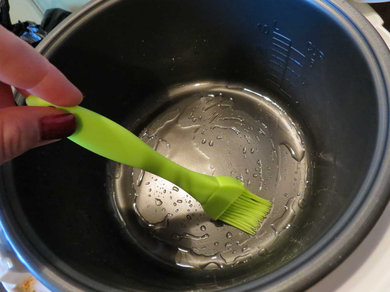 Смазать чашу мультиварки маслом силиконовой кисточкой