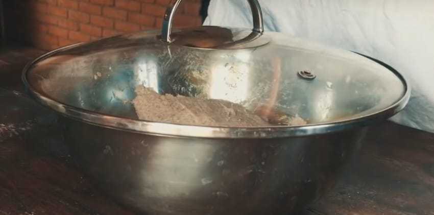 3. Вмешайте последнюю ложку муки, которую отложили. Накройте миску с замесом крышкой и отправьте в духовку на 4 часа при температуре 65 оС.
