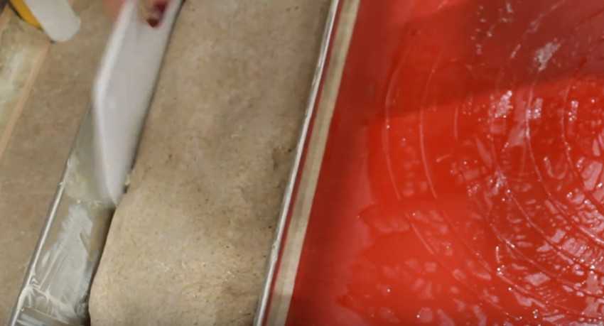 Вкладывая тесто в форму хорошо его придавите, используя ложку или мокрыми