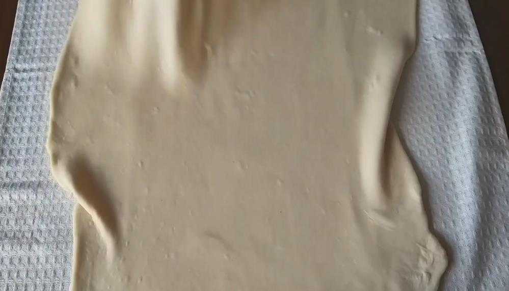 - Снова раскатываем тесто как можно тоньше, растягивая его немного руками.