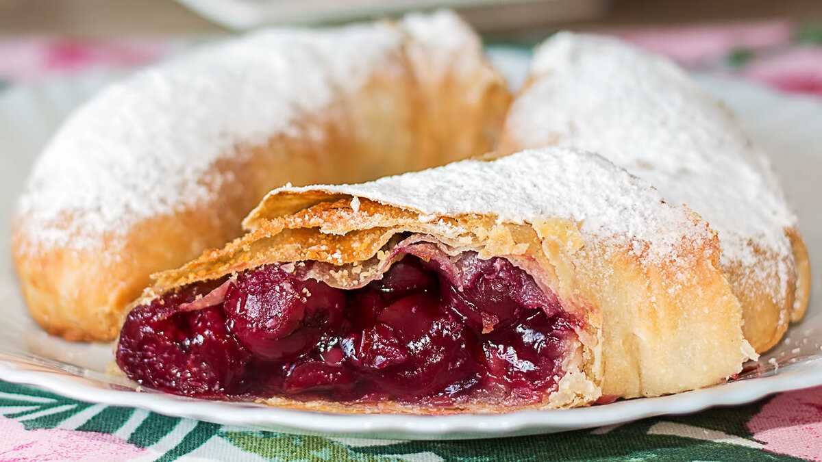 Как сделать штрудель с вишней из слоеного теста по пошаговому рецепту с фото