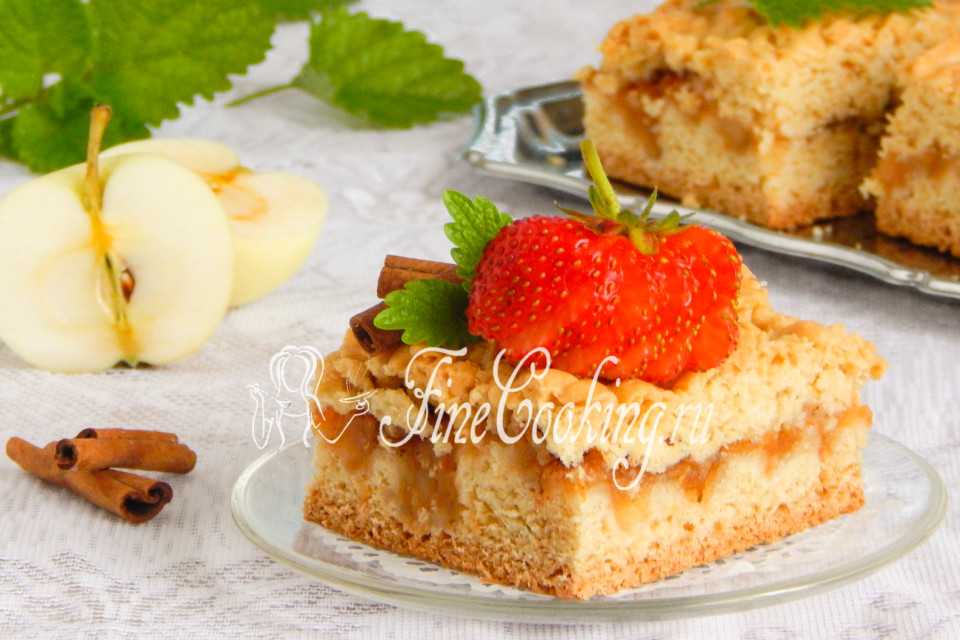 Благодаря рыхлой консистенции насыпного теста, сок из начинки проникает в его глубокие слои. Готовое изделие получается нежным и вкусным