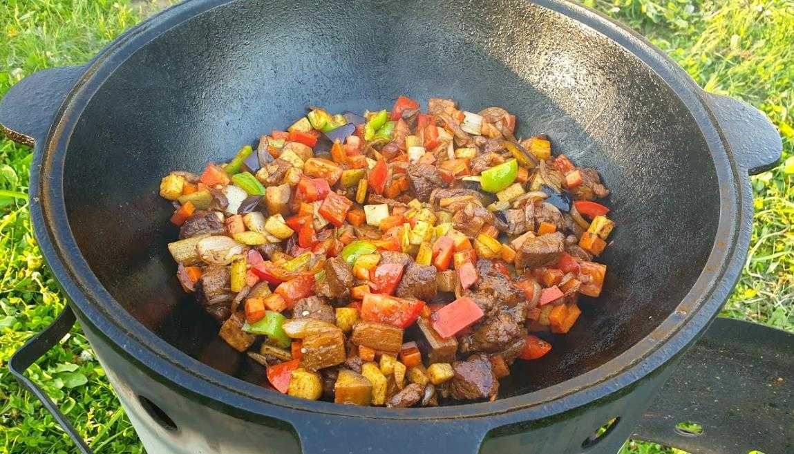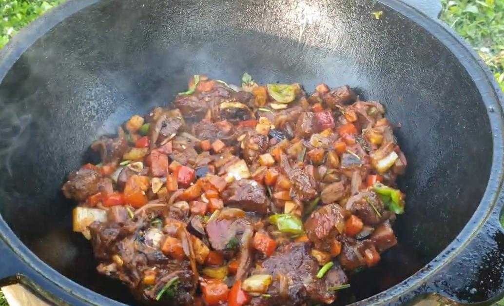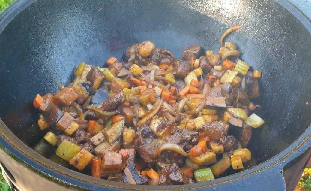 - Все ингредиенты выложить в металлическую емкость с толстыми стенками (казан, кастрюля).