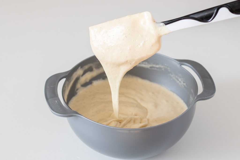 12. Теперь нежно и аккуратно перемешиваем тесто лопаточкой в одном направлении.