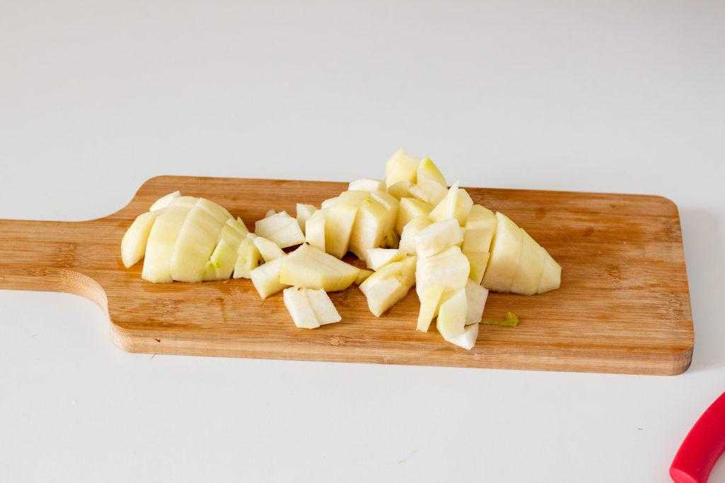 5.Яблоки очистите от шкурки и нарежьте тонкими ломтиками.