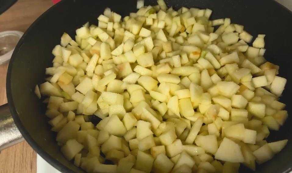 - Очистить яблоки и нарезать их кубиками.