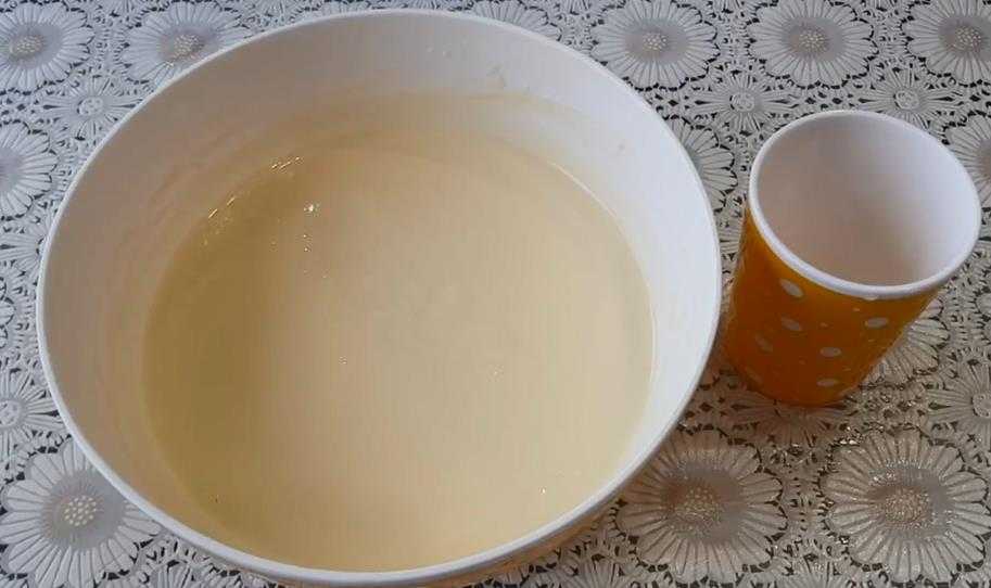 3. Теперь нужно погасить соду кипятком и добавить в тесто. Берем половинку чайной ложечки соды и растворяем в 250 мл кипятка. Понемногу выливаем в чашу и быстро размешиваем венчиком. Даем тесту настояться 15-30 минут и приступаем к жарке.