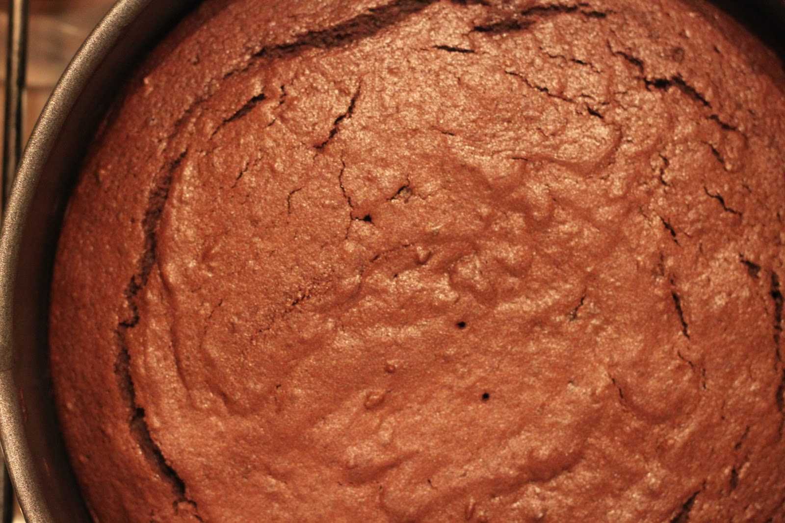 Если верх немного получится бугорком, то лучше его срезать, чтобы корж стал ровным.