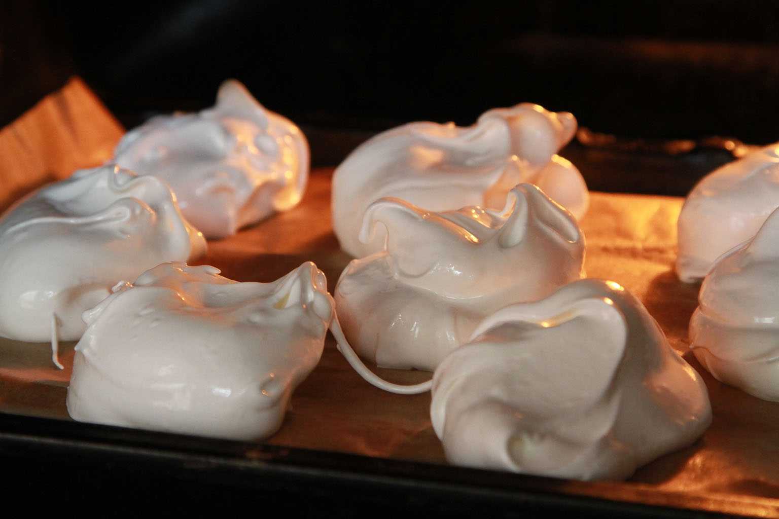 - На противень выкладывают небольшие безе.