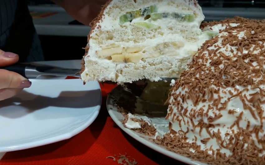Очень вкусный бисквитный торт «Панчо» с бананами без выпечки