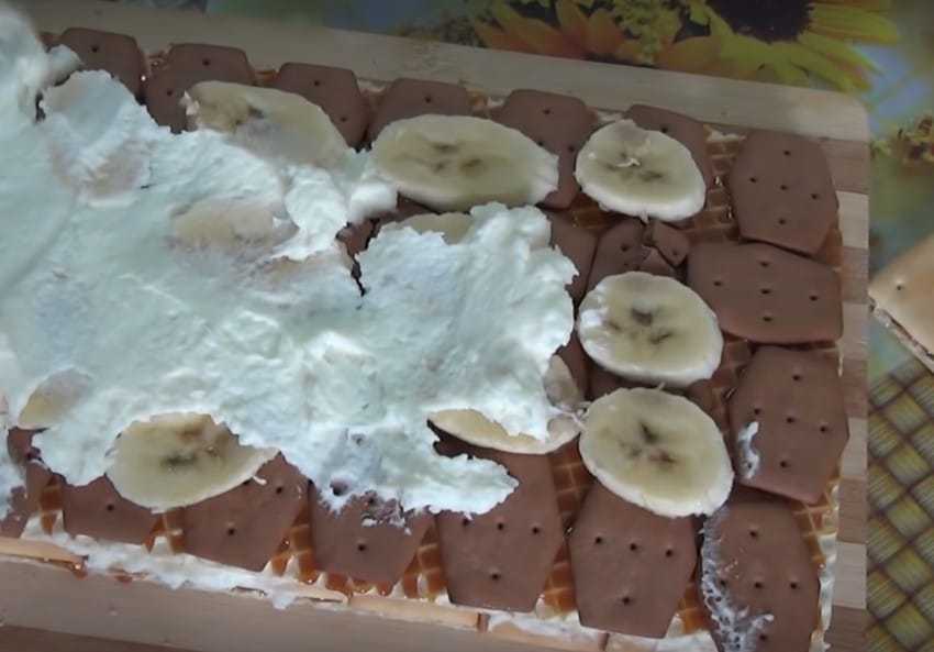 Как приготовить банановый торт со сгущенкой, сметаной и печеньем без выпечки?