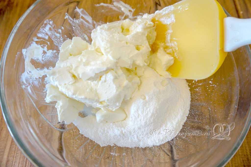 - В чаше миксера смешать холодный сливочный сыр, мягкое сливочное масло и сахарную пудру с ванилью и взбить все до однородности и пышности.