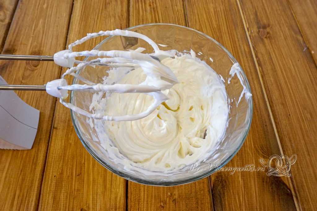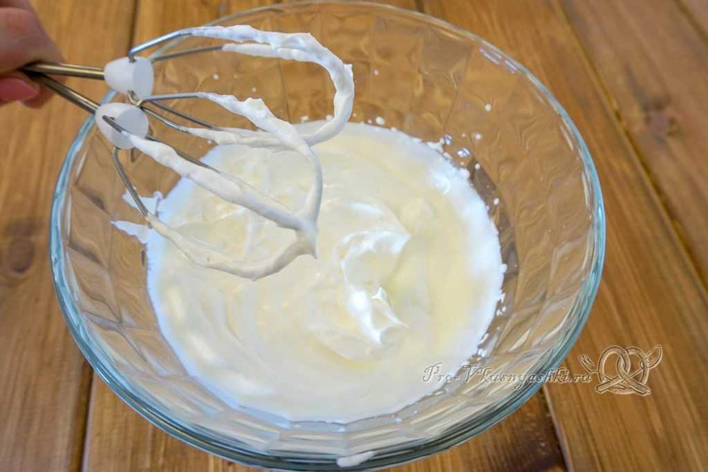 В отдельной посудине взбейте охлажденные сливки до устойчивых пиков