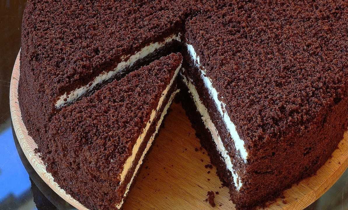 Шоколадный бисквитный торт на кипятке готовится по следующему алгоритму:
