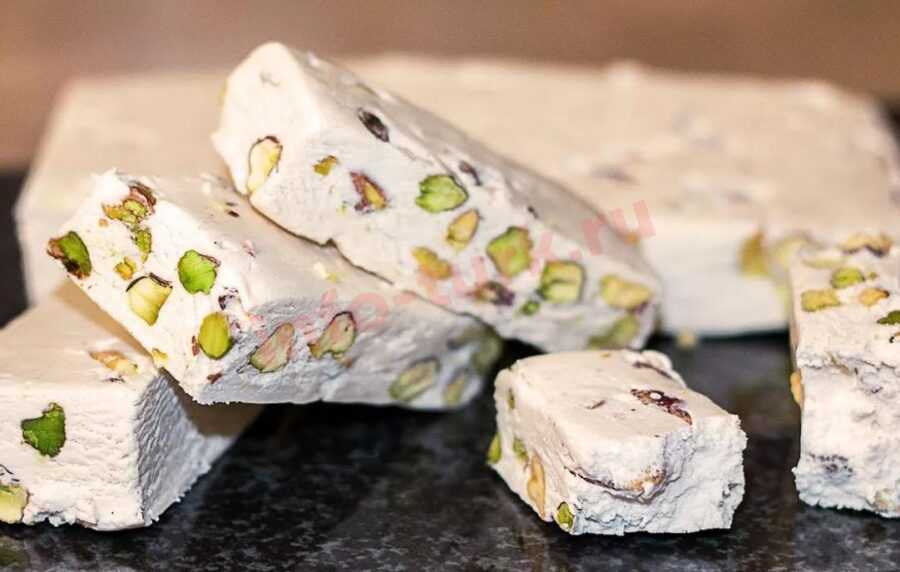 - Белая (мондорлато или торрон) – готовится из взбитых яичных белков и меда.