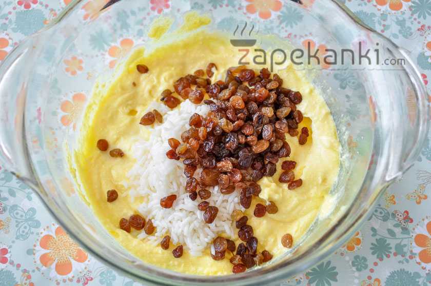 Рецепт 2: домашняя творожная запеканка с рисом и изюмом