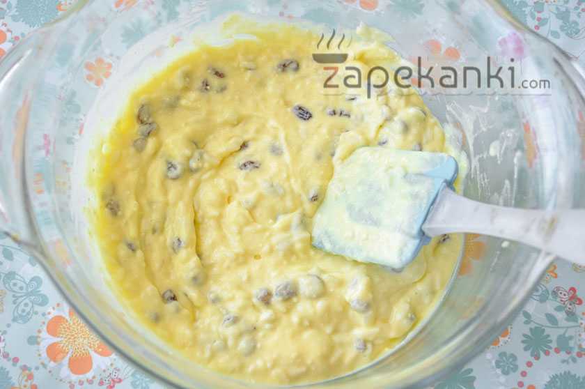 7. Затем туда же добавляем изюм, который предварительно вымываем и обсушиваем.
