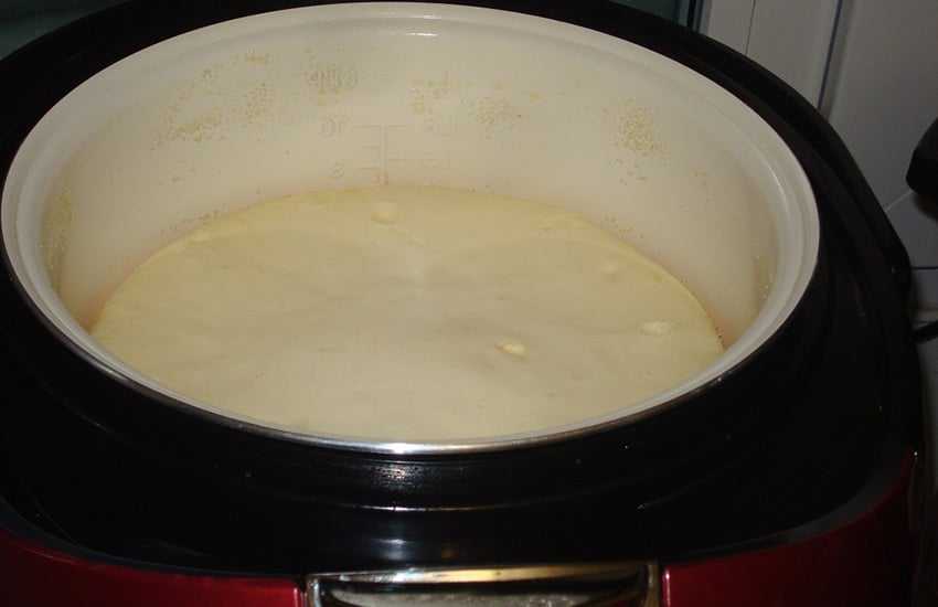 6. Закрываем крышку. Устанавливаем режим выпечки на 50 минут. Затем, не поднимая крышки, оставляем на автоматическом подогреве еще на 10 минут. Затем выключаем подогрев, но крышку не открываем еще полчасика.