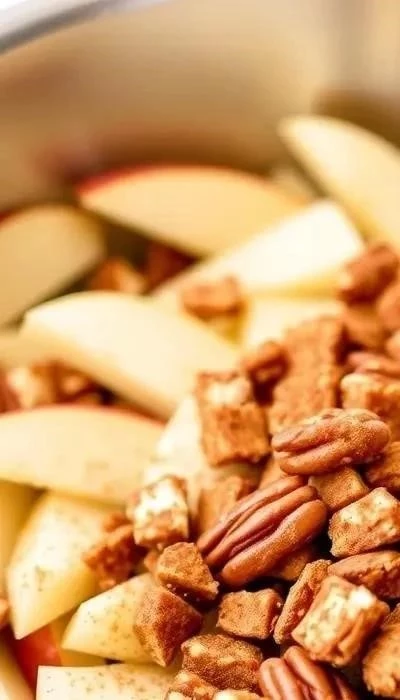 Второй шаг: пока тесто охлаждается, займемся начинкой. Яблоки очистите от кожуры и сердцевины, нарежьте тонкими ломтиками. Смешайте яблоки с сахаром, корицей и обжаренными орехами. Тщательно перемешайте, чтобы яблоки равномерно покрылись специями и орехами. Добавьте немного лимонного сока, чтобы яблоки не потемнели.