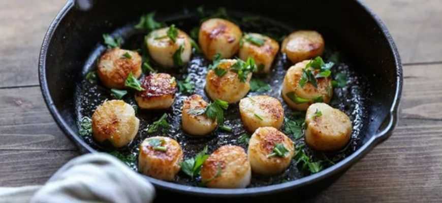 Морской гребешок не должен долго готовиться, иначе мясо будет жесткое. Можно вкусно приготовить филе на сковороде. Перед тем, как начать жарить диетические гребешки, их промывают, используя холодную проточную воду. Все кусочки обтираются с помощью бумажных полотенец.
