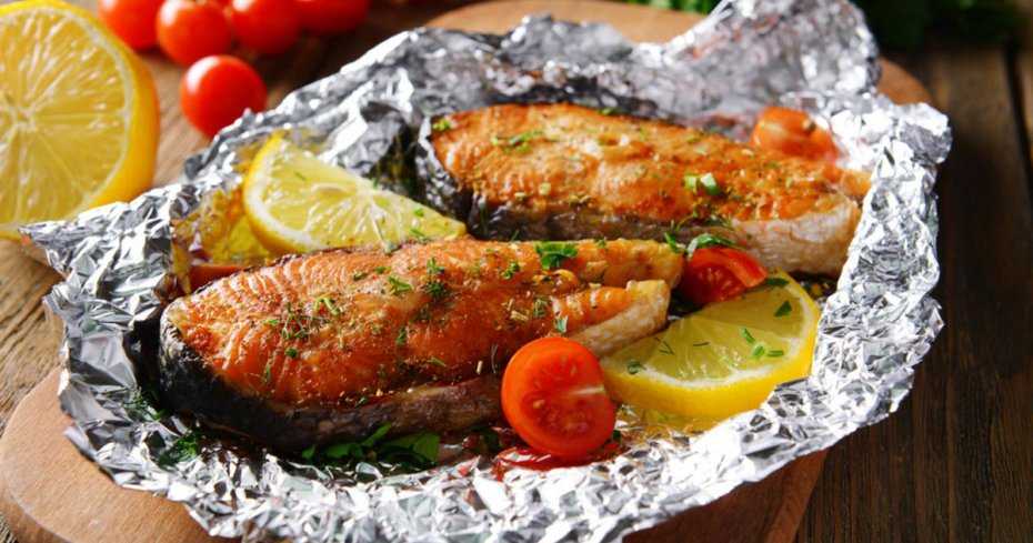 - проверить готовность рыбы можно приоткрыв фольгу и, если мясо внутри посветлело, значит, ингредиент готов;