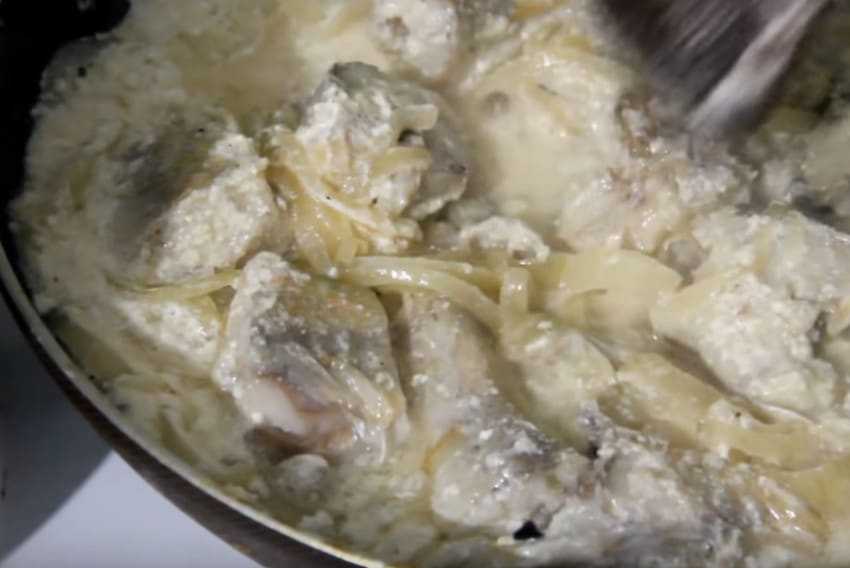 Простой, но не менее вкусный рецепт, для которого не требуются особые кулинарные навыки. Рыба будет готовиться методом томления, хорошо пропитается сметанным соусом, станет нежной и ароматной.