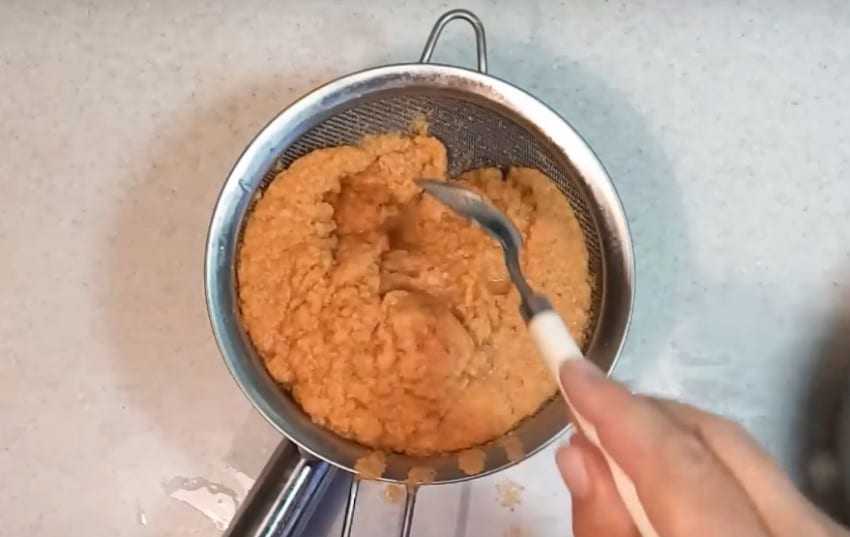 4. Аккуратно слейте воду, стараясь не перемешивать икру, остатки процедите сквозь сито или марлю.