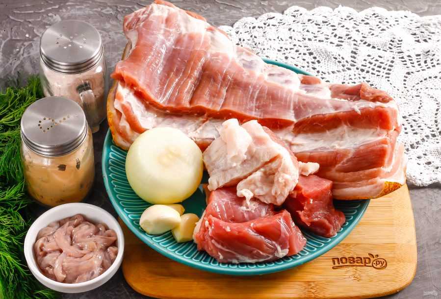 - 400 грамм свиного сала (если не любите, то возьмите просто жирную свинину);