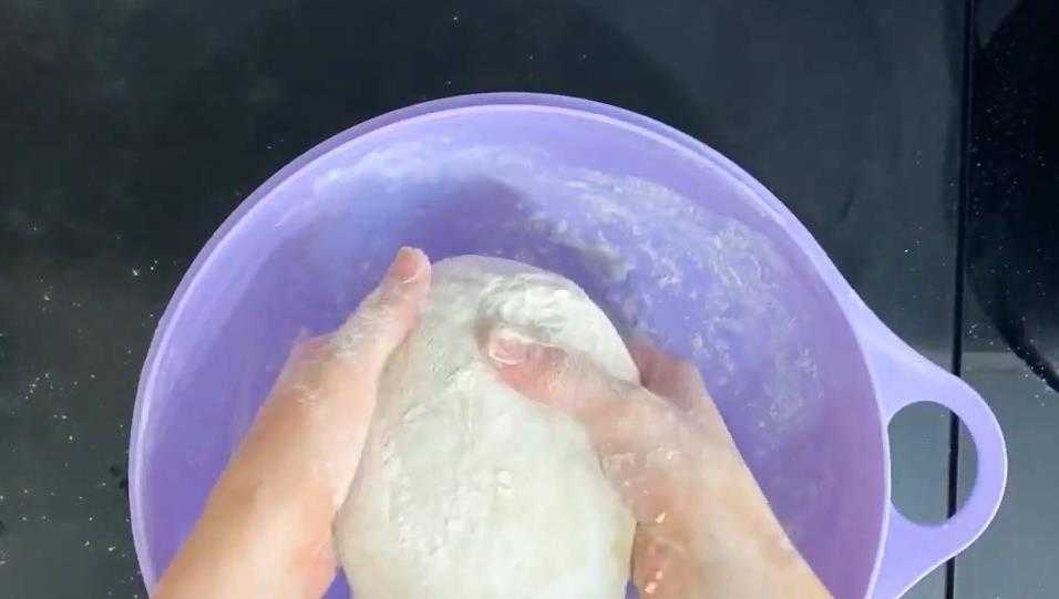 Замешиваем тесто сначала в миске, а затем на столешнице, которую предварительно необходимо присыпать мукой. Тесто должно получиться не слишком крутым. Накрываем его полотенцем и оставляем доходить в течение 20 минут.