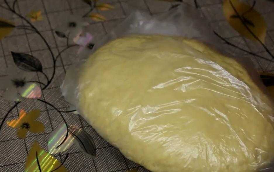 Замесить руками тестовую массу до эластичности. Скатать в шар, обернуть в пищевую пленку и оставить в тепле на полчаса.