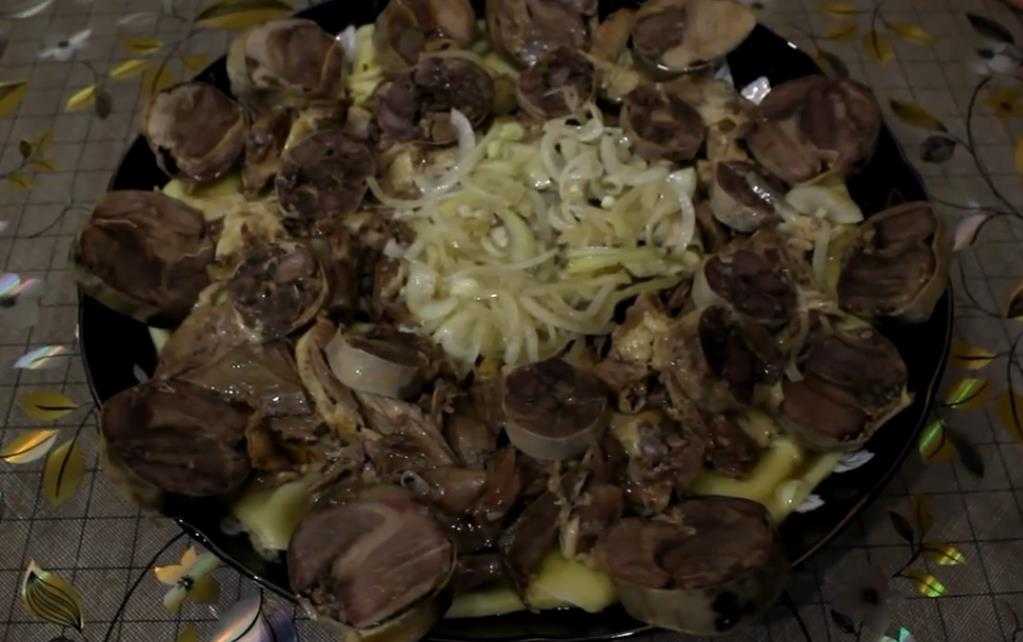 Такие ломтики варят в мясном бульоне 5–10 минут. Вареное тесто и мясо укладывают на поднос и слегка заливают бульоном. Большую часть бульона подают отдельно в пиалах. Как правильно есть бешбармак при такой подаче?
