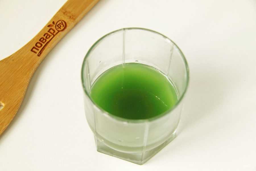 Затем процедите зелень через сито и перелейте в стакан нужное количество жидкости.