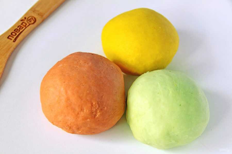 Ну вот, можно лепить! Время приготовления теста зависит от вида краски. Если красители жидкие — примерно40-50 минут.