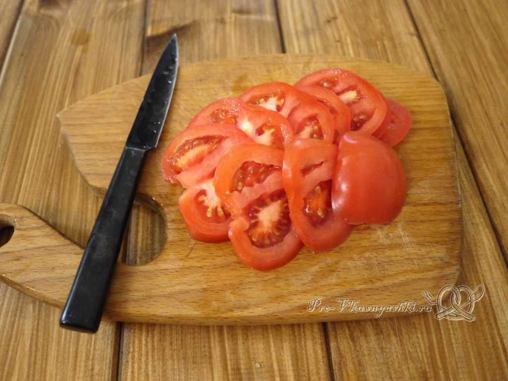 - Залить блюдо кипятком, чтобы гнезда полностью закрыло (около 500 мл.) Тушить 30 минут под закрытой крышкой на небольшом огне. По желанию за 5 минут до окончания готовки обсыпать блюдо тертым сыром, на каждое гнездо положить кружок помидора.