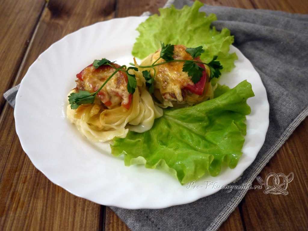 Затем в макаронные гнезда выкладываем сформированные мясные шарики. Этот этап можно назвать фаршировкой.