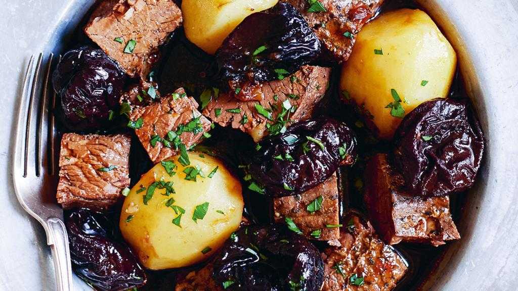 Приготовленная в казане говядина с картошкой и черносливом имеет приятный кисловато-сладковатый вкус.